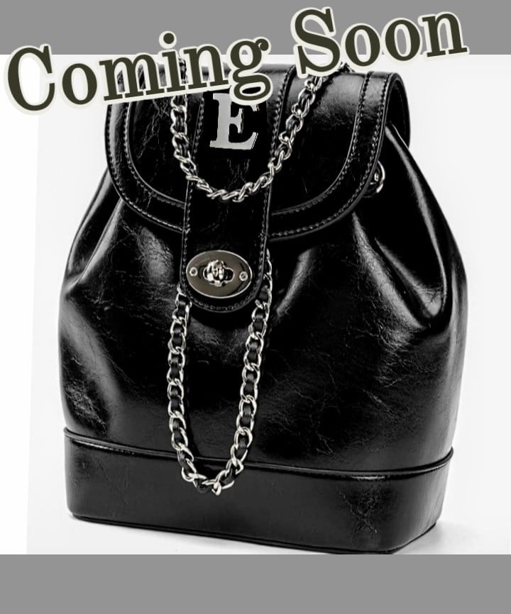 Leather Backpack with Chainand Leather Tweeded Hand Strap