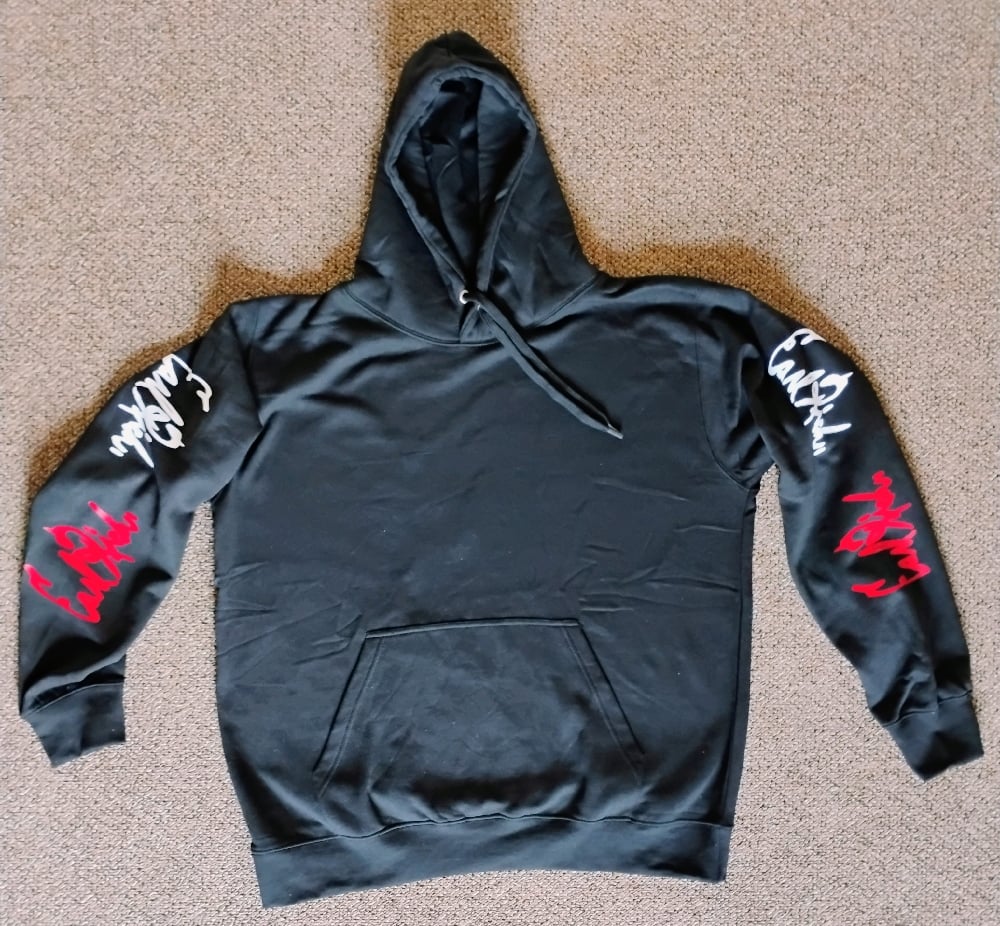 Hoodie with double signature on the sleeve